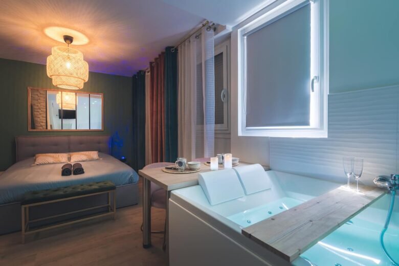 Offrez-vous une parenthèse de bien-être au cœur du Mans 💫 MyLove vous accueille dans un cocon romantique avec baignoire balnéo, sauna privatif, douche à l’italienne …