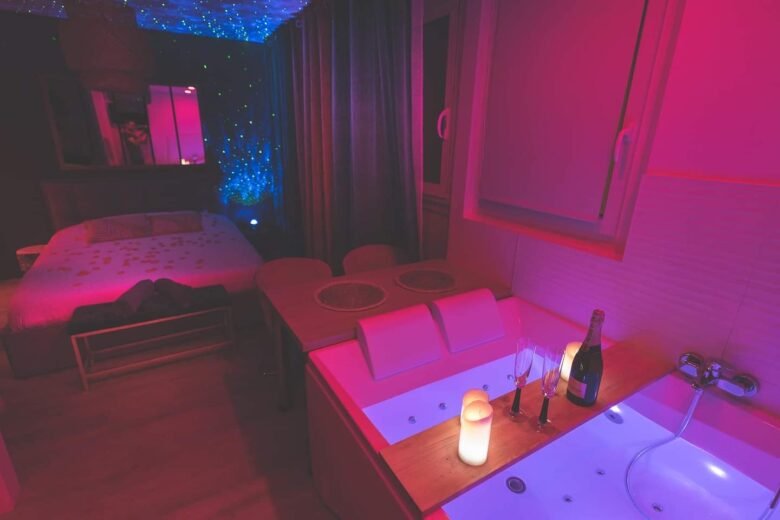 Ici, tout est pensé pour l’évasion : jacuzzi privatif, ambiance tamisée, lit queen size haut de gamme, champagne, bougies et surprises pour sublimer vos instants à deux. Idéal pour une escapade romantique, un anniversaire ou simplement profiter d’un moment unique de complicité.