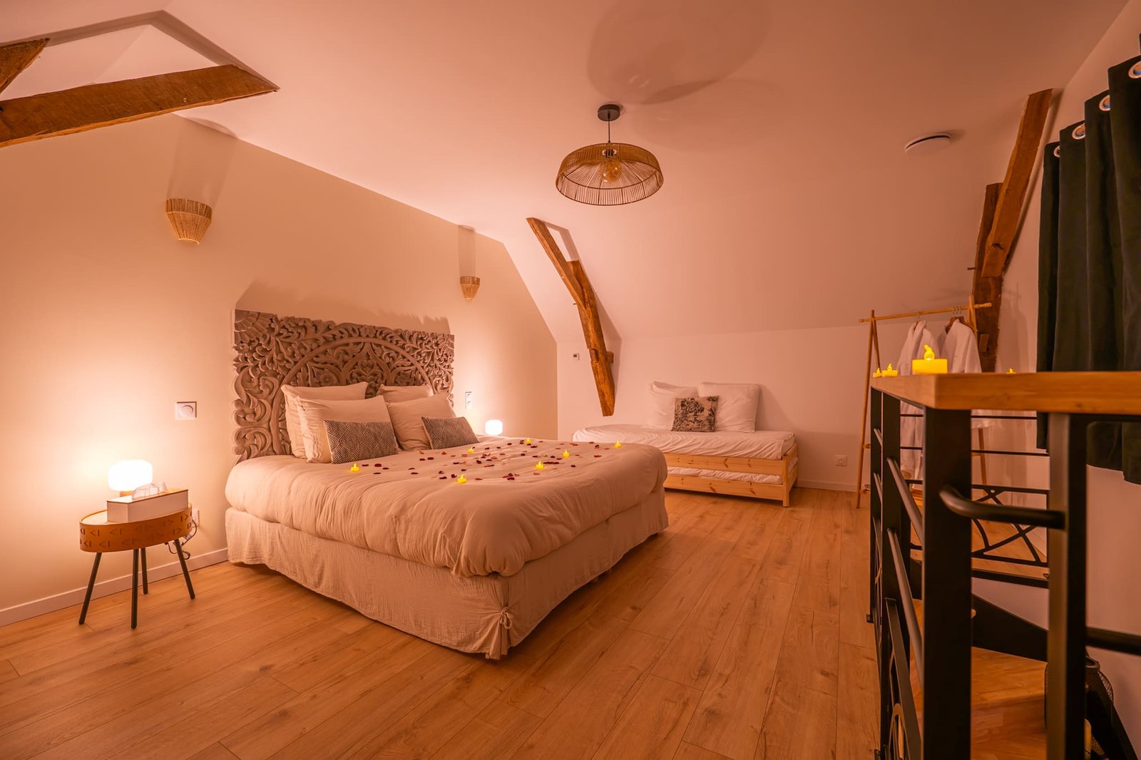 Bienvenue à la Grange de Clyna, un véritable havre de paix niché au cœur de la campagne sarthoise, à seulement 10 minutes du mythique circuit des 24 Heures du Mans. Cette ancienne grange rénovée de 245 m² allie charme des vieilles pierres, équipements haut de gamme et atmosphère chaleureuse pour accueillir jusqu’à 12 personnes. Que vous soyez en famille, entre amis ou en déplacement professionnel, la Grange de Clyna vous offre un cadre unique avec 4 chambres confortables (dont deux familiales), 2 salles de bain modernes, un vaste espace de vie, une cuisine équipée avec appareil à raclette, crêpière, cafetière Senseo, four, micro-ondes, et un coin repas convivial. Le véritable atout ? Son espace bien-être avec piscine intérieure chauffée et jacuzzi privatif. Un moment de détente assuré après une journée de balade ou d’événement sportif. Pour un séjour romantique, la Grange propose également une configuration en Love Room privatisée, idéale pour un week-end à deux. Profitez d’une grande chambre avec vue verrière sur la piscine, jacuzzi privatif, filet suspendu au-dessus de l’eau, et un petit-déjeuner inclus. À l’extérieur, la terrasse en bois exotique, le mobilier extérieur, le barbecue et le jardin vous invitent à profiter des beaux jours. Parking gratuit sur place, Wi-Fi, Apple Tv, Chromecast, lit bébé, jeux de société, enceinte Bluetooth… tout est pensé pour votre confort. La Grange de Clyna, c’est l’assurance d’un séjour hors du temps, dans un environnement préservé, calme et inspirant. Réservez dès maintenant votre escapade inoubliable au cœur de la Sarthe !