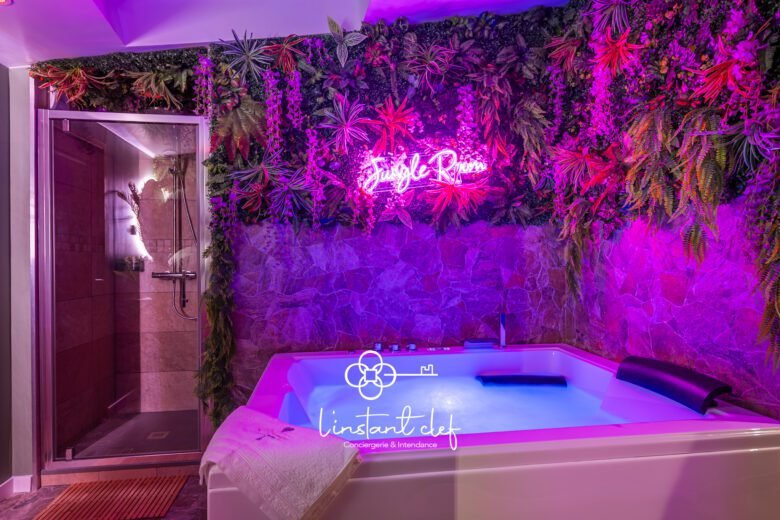 Le Spa Monnet, une dépendance récemment restaurée, prolonge cette expérience de bien-être. Une pièce de vie baignée de lumière naturelle vous accueille, avec une cuisine ouverte sur le salon pour des repas en toute convivialité. Imaginez vous détendre dans le jacuzzi après une journée riche en découvertes, ou profiter de la terrasse privative avec vue sur le jardin, un véritable refuge de sérénité. La chambre parentale, avec son lit 160×200, est un cocon de douceur où la détente est reine.